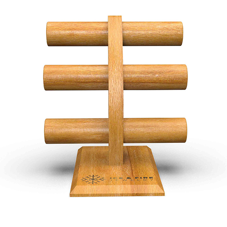 Crafted from solid wood with a finely painted finish that preserves the material's natural aesthetic, this wooden bracelet T-bar stand from FIXTURISTIC delivers both elegance and function. The base features a customized silver-toned brand logo, adding a distinctive and memorable touch for customers.